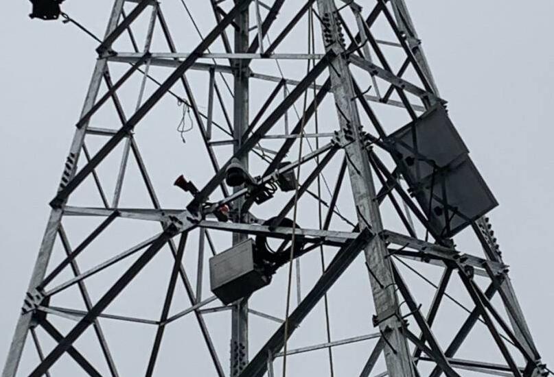 “再拉高一點(diǎn),好好好,現(xiàn)在保持不動”,這是我司(深圳市特力康科技有限公司)工程師楊工在廣西安裝輸電線路隱患立體防護(hù)設(shè)備時,塔上隊(duì)友通過對講機(jī)通過塔下吊升主機(jī)的相關(guān)人員拉升主機(jī)高度,以便主機(jī)與角鐵達(dá)到適當(dāng)位置,方便進(jìn)行支架的固定。