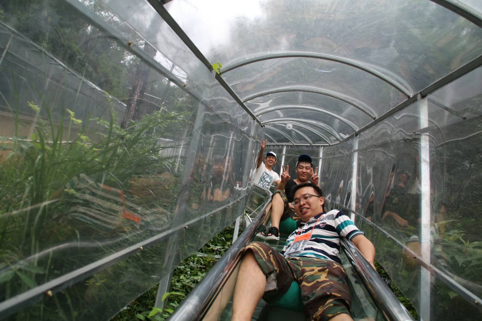 大約經(jīng)過半小時的登山,便抵達了驚魂玻璃橋及與之相依的飛龍滑道,驚魂玻璃橋的空中廊橋全長接近200米,懸空離地180米左右,對于有恐高癥的人來說,不畏是一處挑戰(zhàn)自我的好地方。不過,再怎么害怕,再通過全長達500多米的飛龍滑道到達山下之后,也就不存在了,長長的滑道可是讓我們重新體驗了一把童年的滑梯享受。另外,景區(qū)還設有水上樂園、空中漂流及水上拓展項目。