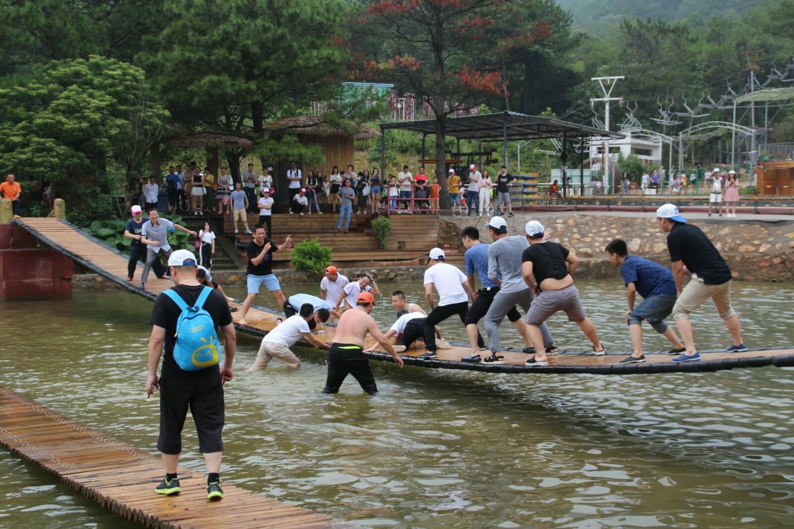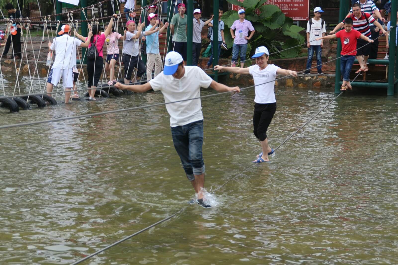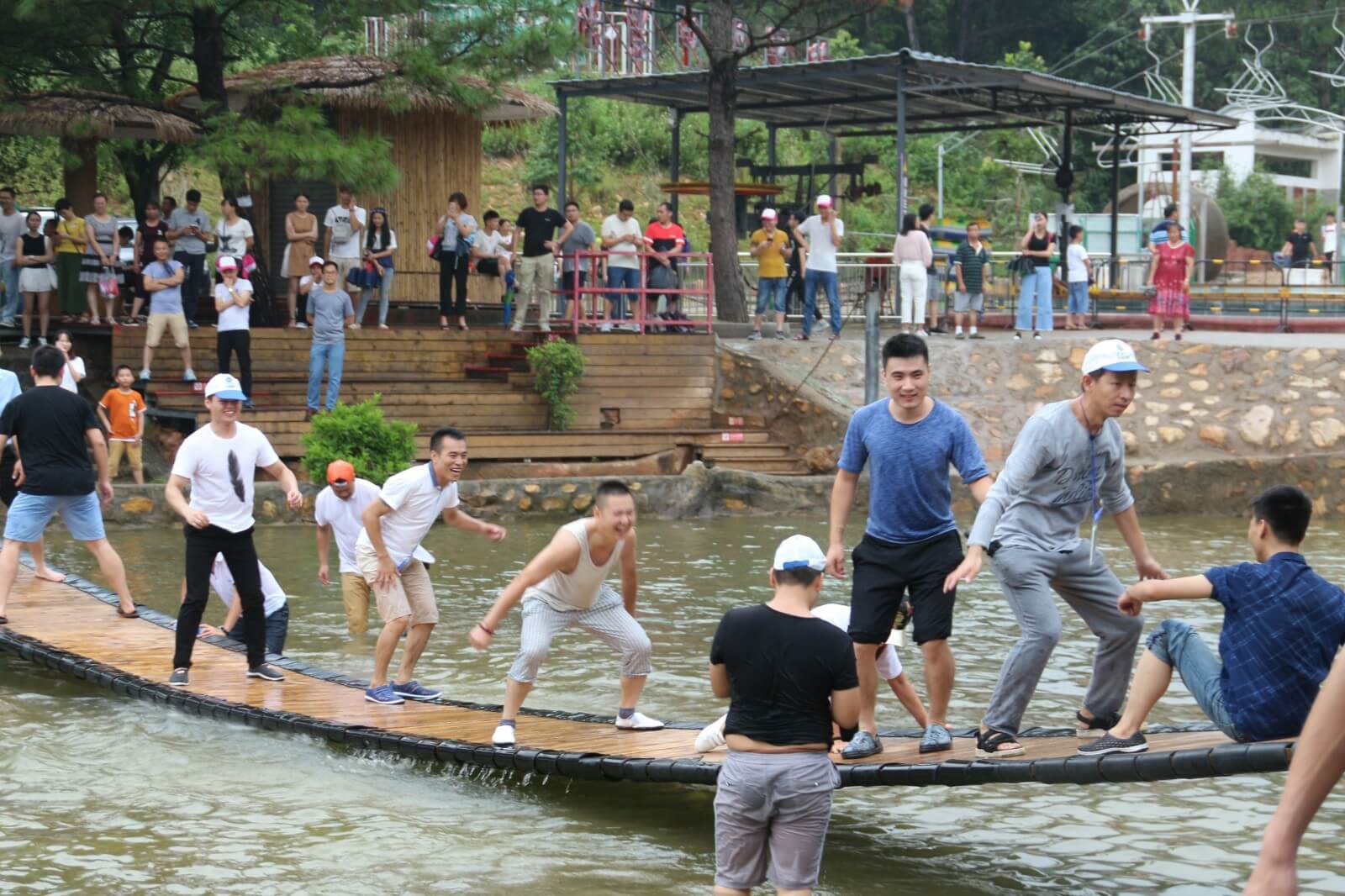 我們懷揣著忐忑與激動的心情加入了漂流的隊伍中,湍急的流水時而將我們淹沒,時而將我們拋起,帶著我們在狹窄的河道橫沖直撞,讓我們親身體驗了漂流的刺激。當然,河道也有緩沖流域,在這我們可以用水槍及水瓢打水戰(zhàn),除隊友以外人員均可作為水戰(zhàn)對手,你一槍,我一瓢,玩得不亦樂乎。