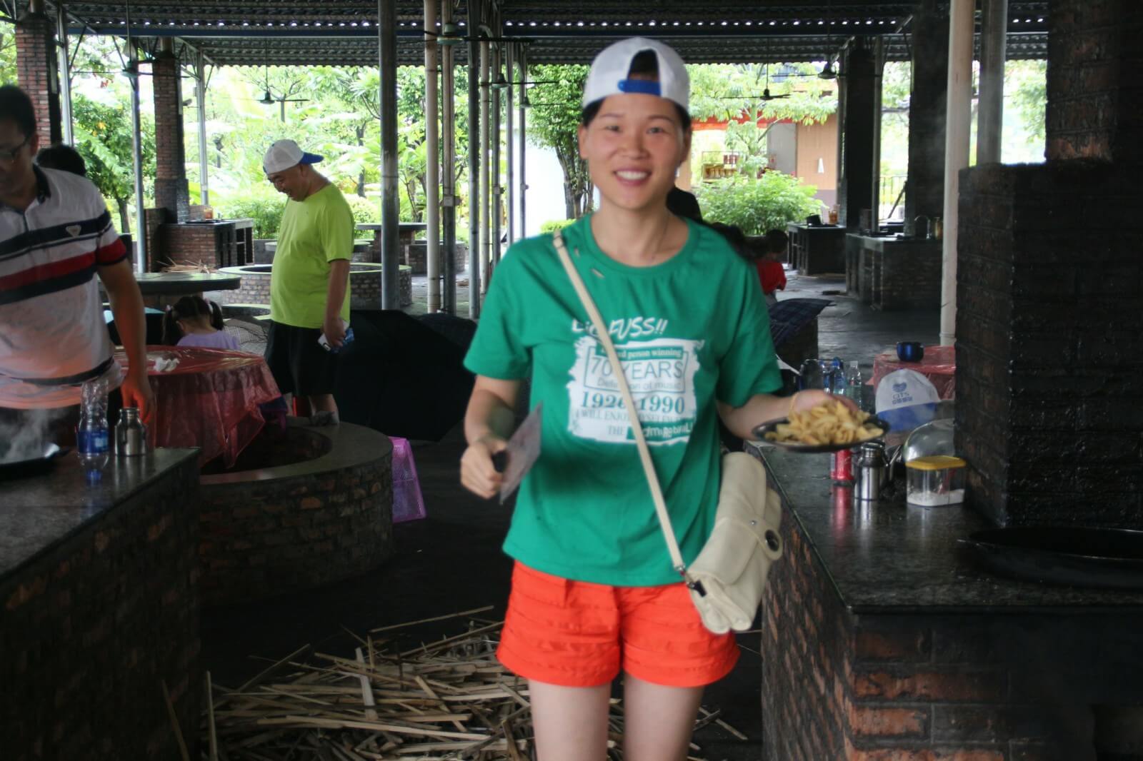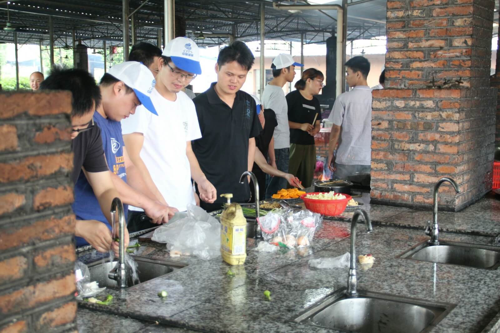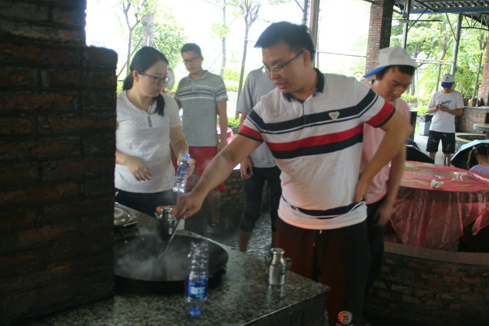 第三天,我們跟隨生物鐘醒來,相比前兩天,今天的活動時間相對寬裕,早上九點多起來吃過酒店特意留的早餐我們啟程去往郊區(qū)野炊,野炊自給自足,一切吃的都要自己動手在公司我們是職員現(xiàn)在我們是廚師大家都磨拳擦掌的行動起來,洗菜的、掌勺的、打下手的、添柴火的,不一會兒一盤色香味俱全的菜擺在桌上沒多久桌上已經(jīng)是好幾道菜了有炒蛋、冬瓜湯、爆炒雞塊、南瓜片、炒青菜....,每道菜都富有不同的特色我拿起了手中的相機,將這一刻留在了鏡頭之中,大家相互顯無比親近,雖然只有這短短的三天。