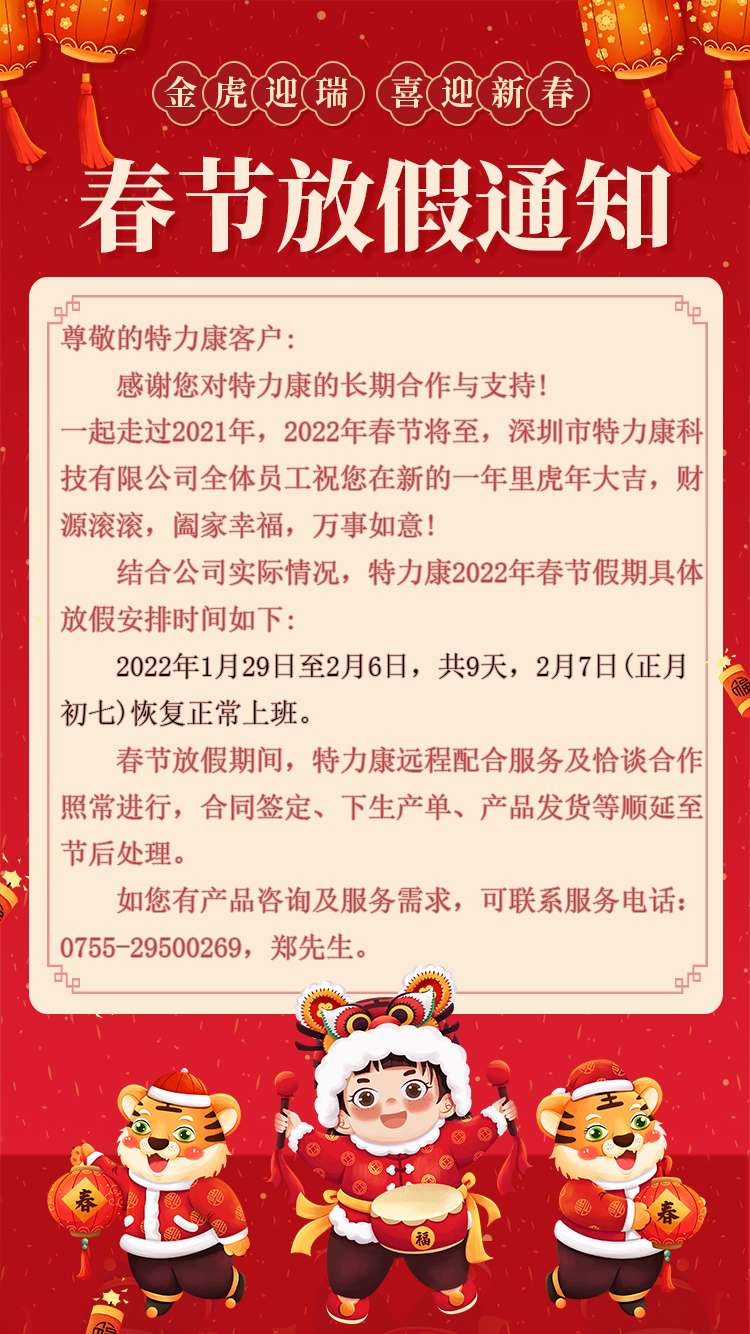 2022年春節(jié)即將來臨,根據(jù)國家相關規(guī)定,結(jié)合本公司實際情況,經(jīng)公司領導決定2022年春節(jié)假日具體放假安排時間如下: