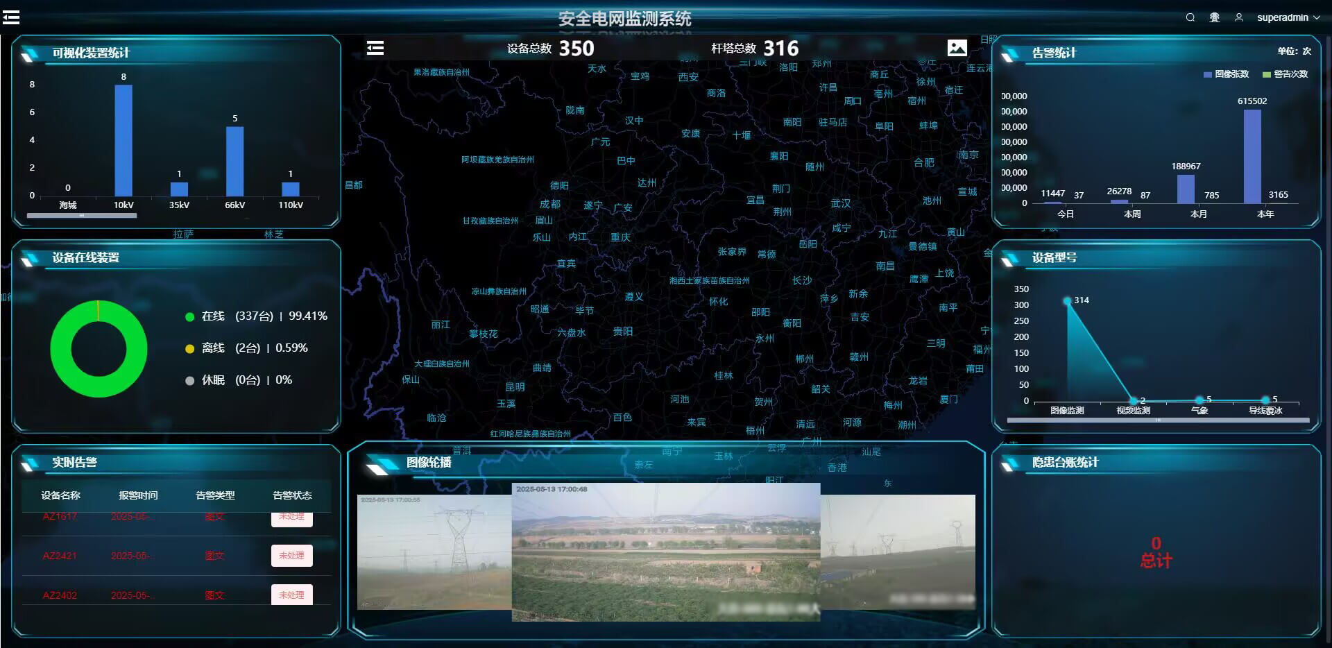 安全電網(wǎng)監(jiān)測系統(tǒng)軟件平臺TLKS-PMS主要由監(jiān)控平臺、設備通訊處理服務及各類子監(jiān)控巡視系統(tǒng)組成。整個系統(tǒng)以監(jiān)控平臺為核心,完成對各類子系統(tǒng)的整合,集中實現(xiàn)監(jiān)控數(shù)據(jù)處理、實時巡視、數(shù)據(jù)分析、數(shù)據(jù)推送等功能,并完成與其他系統(tǒng)的鏈接通信。實現(xiàn)對輸電線路現(xiàn)場視頻、施工環(huán)境、覆冰、氣象、振動、形變監(jiān)測等各種重要信息的集中收集、處理、巡視、預警等功能。