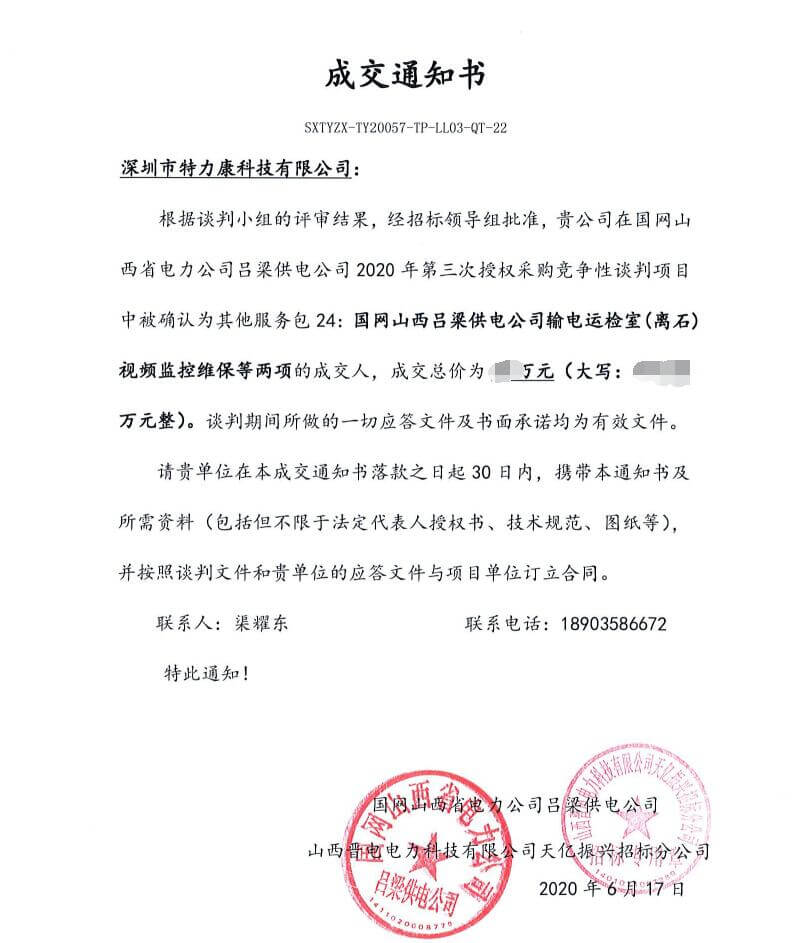 特力康中標(biāo)國網(wǎng)黑龍江送變電工程公司的2024年度第18次物資類競爭性談判采購項(xiàng)目——慶陽驅(qū)鳥器物資框 特力康中標(biāo)國網(wǎng)甘肅省電力公司省管產(chǎn)業(yè)單位2024年第五次物資競爭性談判授權(quán)采購項(xiàng)目 中標(biāo)喜訊:深圳市特力康科技有限公司成功入圍許繼集團(tuán)綜合能源公司輸電線路視頻在線監(jiān)測裝置模塊集采項(xiàng)目 中標(biāo)喜訊:特力康成功中標(biāo)國網(wǎng)重慶市電力公司渝中一片區(qū)項(xiàng)目 特力康成功中標(biāo)國網(wǎng)天津市電力公司2024年第二次?物?資招標(biāo)項(xiàng)目 特力康中標(biāo)國網(wǎng)安徽省電力有限公司蕪湖供電公司2024年3月非物質(zhì)采購項(xiàng)目 特力康輸電線路智能AI多目監(jiān)控裝置+傾斜監(jiān)測守護(hù)山西輸電生命線 鄂網(wǎng)“全景眼”:特力康一體化視頻監(jiān)控系統(tǒng)守護(hù)輸電線路 山東電網(wǎng) “穩(wěn)塔哨兵”:特力康智能桿塔傾斜監(jiān)測預(yù)警裝置筑牢電力桿塔安全防線 特力康科技輸電線路高清圖像監(jiān)控裝置,為河南輸電通道筑牢安全屏障 黃土高原護(hù)塔穩(wěn):特力康傾斜監(jiān)測裝置為山西電網(wǎng)筑牢根基 黔山冰防線:特力康 “數(shù)據(jù) + 圖像” 雙監(jiān)測守護(hù)貴州輸電線路 戈壁林區(qū)的 “火情哨兵”:特力康紅外熱成像裝置守護(hù)甘肅輸電線路 內(nèi)蒙電網(wǎng)裝上 “舞動監(jiān)測眼”:特力康輸電線路防舞動監(jiān)測系統(tǒng)守護(hù)線路安全 寧夏配電線路安裝了我司防外破電子化智能警示牌