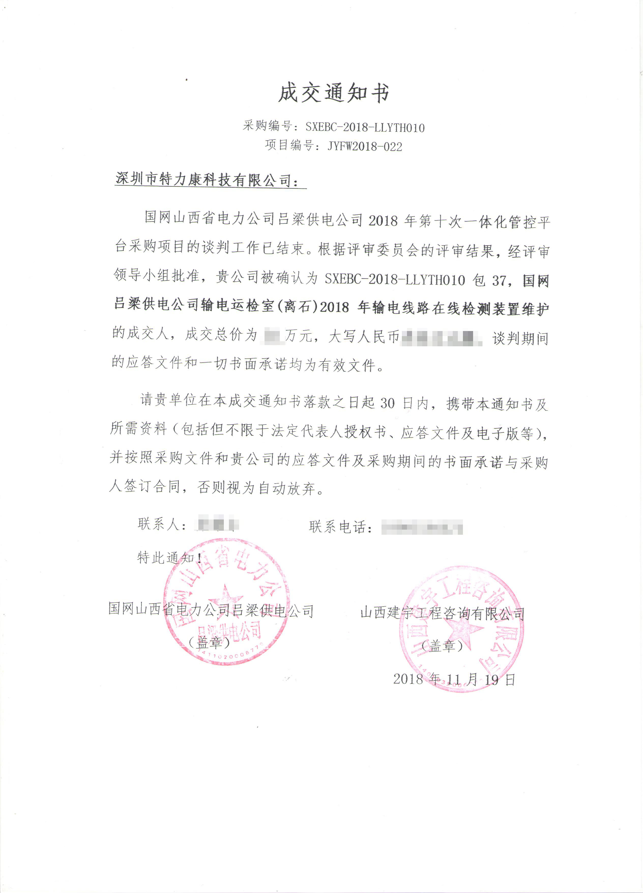 國網山西省電力公司2018年第十次一體化管控平臺采購項目評審工作已結束,經評審委員會評審,經國網山西省電力公司招投標領導小組批準,將評審結果公示。我司被確定為中標單位現(xiàn)將公告公示。
