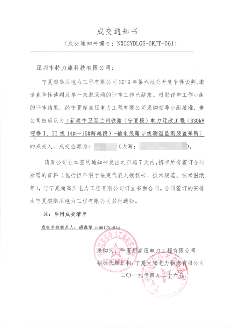 我司中標(biāo)寧夏超高壓局2019年第六批公開競爭性談判電力遷改項(xiàng)目